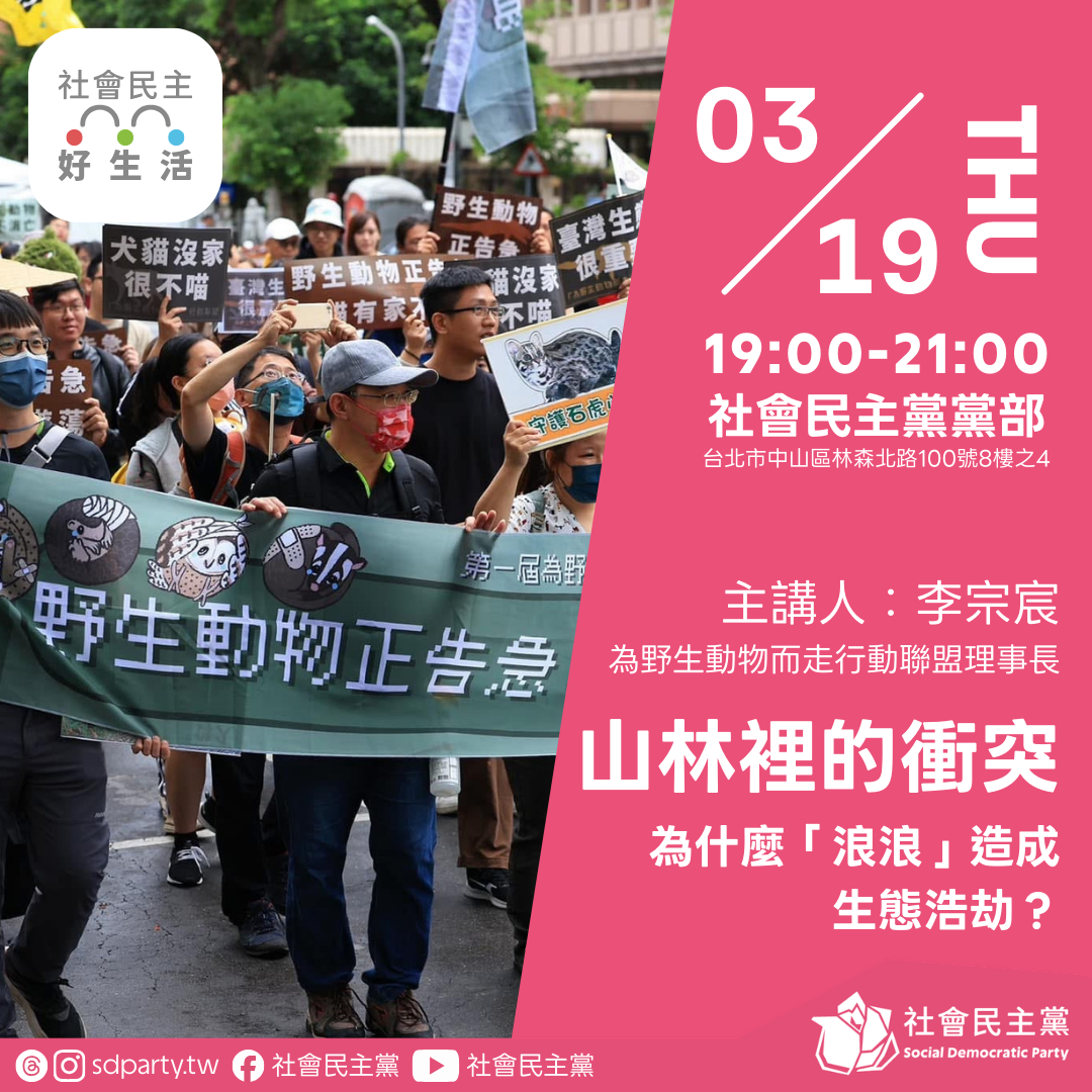 貓貓狗狗【20260319-社會民主好生活】山林裡的衝突─為什麼「浪浪」造成生態浩劫?這場講座將從科學數據、國際經驗與台灣政策落差出發,解析遊蕩犬貓造成的生態浩劫的結構性根源。邀請你也一起來討論其應對策略和有效的管理方針。2026年3月17日閱讀更多